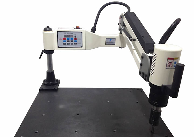 智能電動攻絲機 產品的優勢: 1、本機采用伺服驅動控制,帶有智能扭矩保護,代替了傳統的車床,鉆床或手動攻絲的局限。 2、機械設計先進,多種工藝使用模具鑄件,整體剛性強,